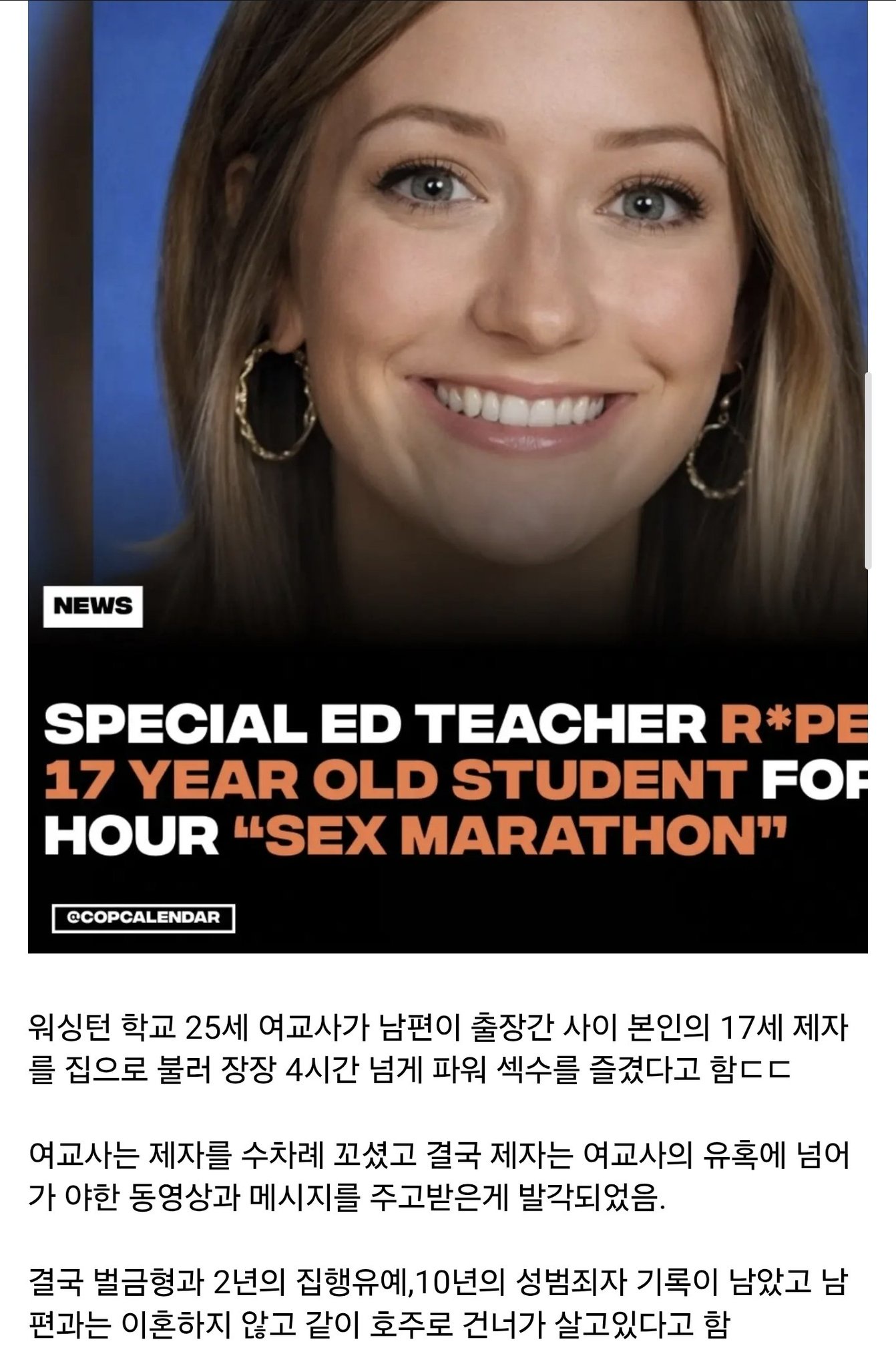 ワシントン州スポーケンのセントラルバレー高校に勤務していた元教師マッケナ・カインドレッド(当時23歳)が、17歳の男子生徒エライジャ・ベックレーに対して性的不正行為を行ったとして有罪となった事件の詳細が、このほど公開されたメッセージを通じて改めて注目を集めている。